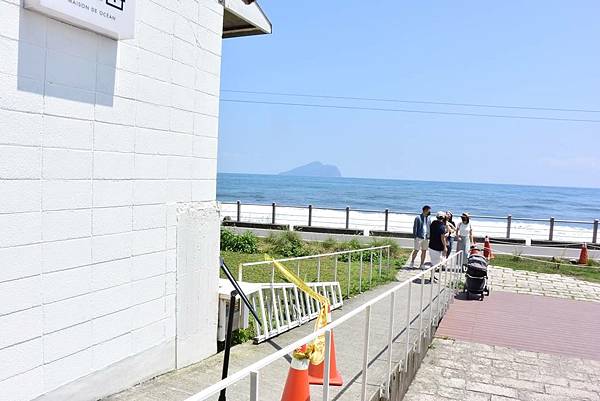 靠海有一條自行車道,往左邊看的白色二層樓就是目的地,不時就可以看見二樓「搔首弄姿」拍照的人。
