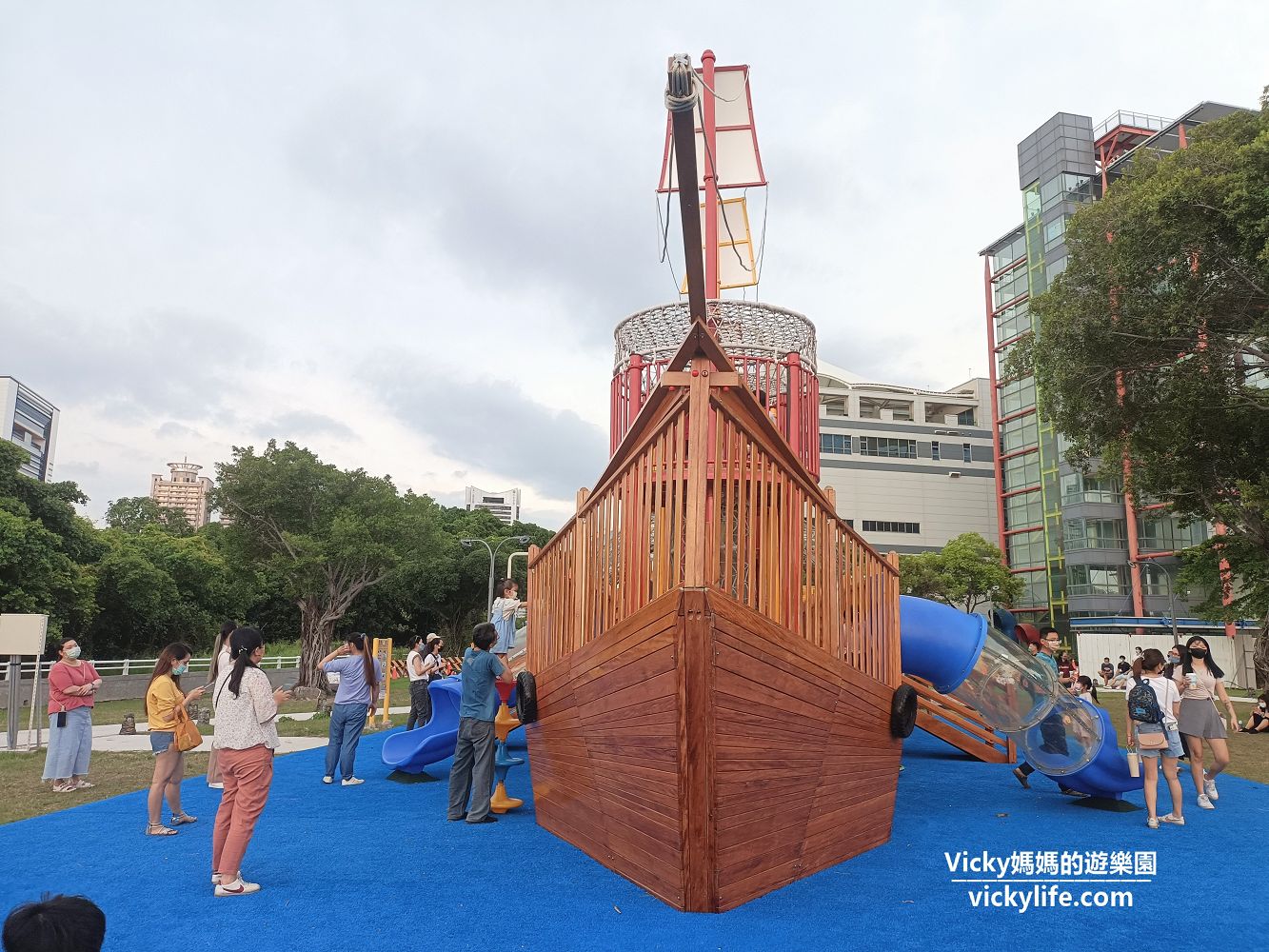 看到這艘大船,孩子們一定等不及要跑到大船上面玩,就讓孩子們盡情在船上奔跑遊玩,因為這艘船上面有各種「機關」,孩子都可以挑戰看看。若家中的孩子喜歡船的遊具,建議可造訪台南健康綠洲公園或是屏東永大公園,這兩座公園都有船,而且都好好玩。