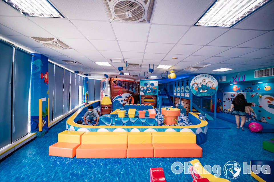 一進室內迎面而來的就是海洋藍的牆面和海洋世界的天花板,不要忘記抬頭欣賞,上頭可是有很多驚喜喔~