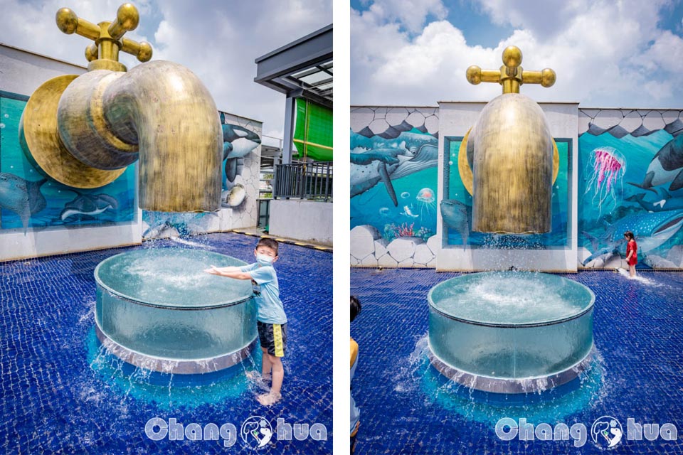 園區中最搶眼的就屬這座世界最大水龍頭,可說是園區的特色招牌!!而且牆上也有海洋風格的壁畫,在這裡不只玩水還能美拍呢!