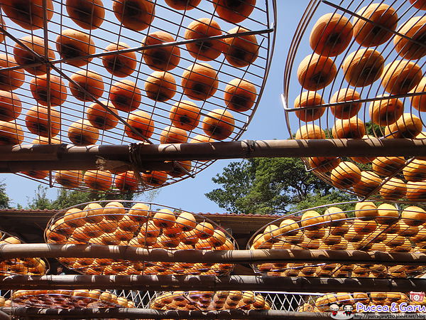 三合院這個曬場是傳統擺設,隔壁有較現代的曬法,其實不只Pucca和Garu,連媽咪我都是第一次看曬柿子呢!