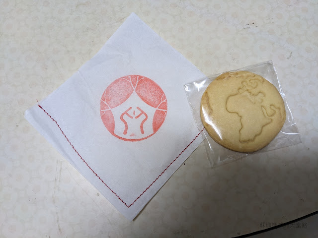 這天我們参加了沙包DIY活動,在建築中最大最主要的座敷(客廳)中舉行,兄妹倆第一次拿真正的針線來縫,小一哥哥在老師和爸爸指導後,幾乎全程自己縫;中班妹妹則是我幫了不少,但也有讓她幫忙穿針引線一下。體驗完後,在FB分享活動心得,可以得到天然食材製作的地球日餅乾,連裝餅乾的紙袋都很有設計質感。