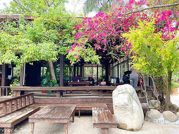 園區內的桌椅組真的很多,只是我們來的這天遇上下雨,溼答答的。