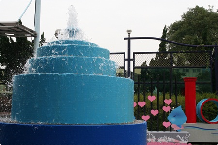 有個輸配水器材區,可以看到好幾個很鮮豔的天藍色水管