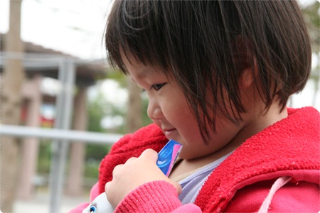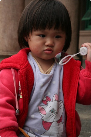 女兒也忙著吹她的泡泡 都不給我們拍照啦!!