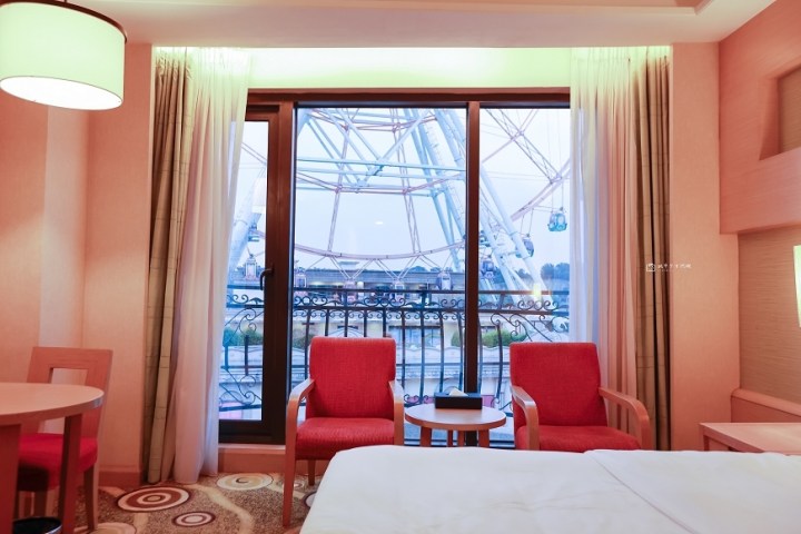 這個房型是飯店內唯一面向義大世界摩天輪的房間,這視角實在太夢幻了!!!