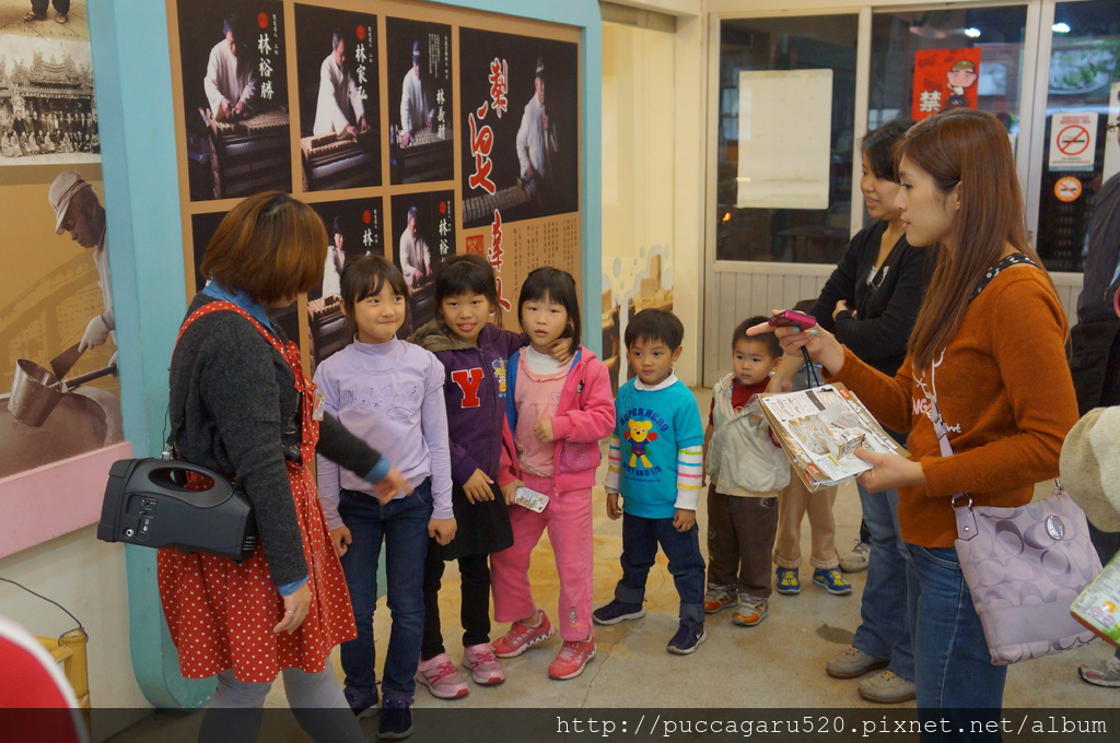 導覽開始,先介紹賣茶摳阿公的故事,然後讓幾位自願的小朋友挑挑扁擔表演叫賣: 茶摳~~ 薩雯~~