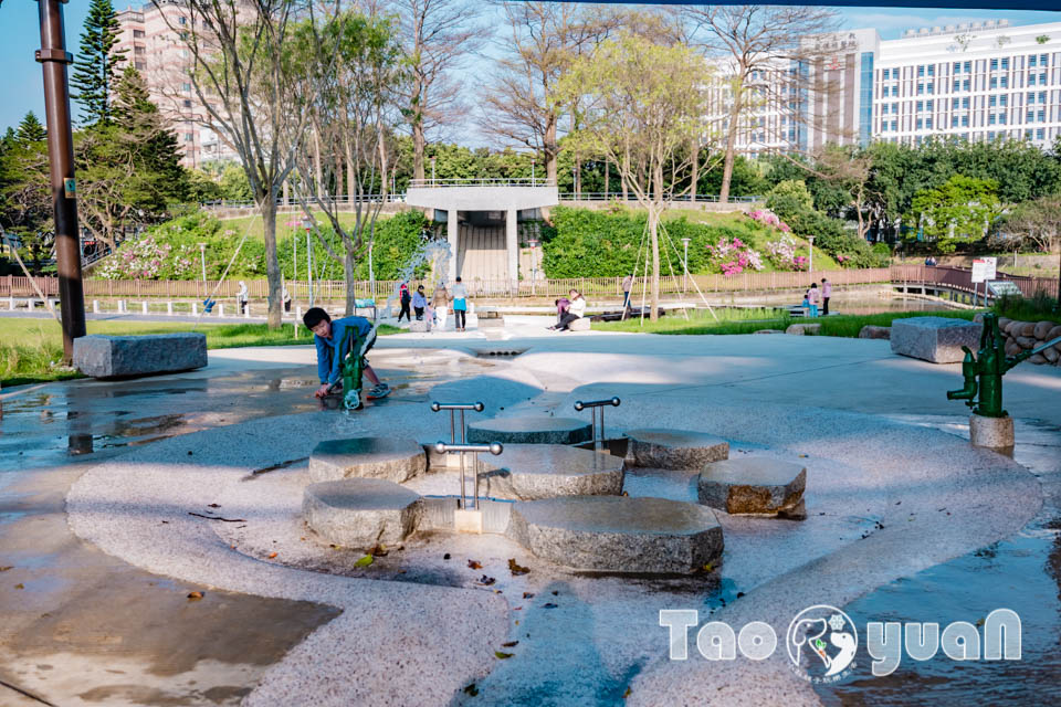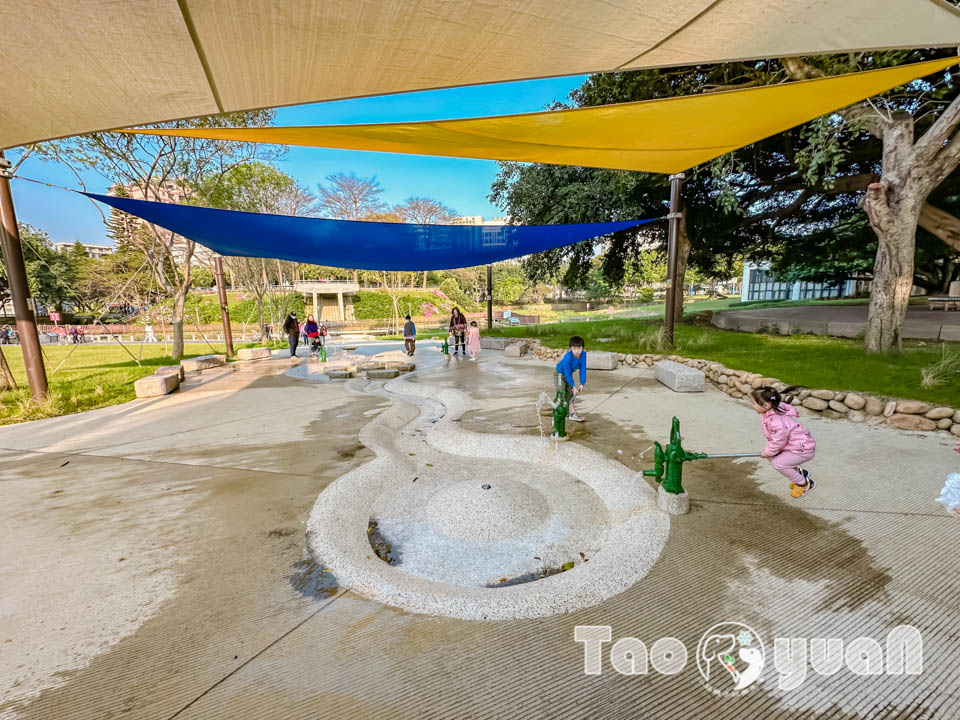 ▼【噴水廣場】還沒到盛夏時光,公園裡的噴水廣場已經有不少開心玩水的小朋友,此區有遮陽設備很加分呢!