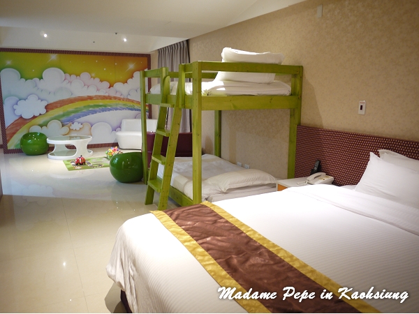 所以, 這次來高雄找朋友, 捨棄了以往的漢來, 改住擁有各式主題房型的宮賞藝術會館,為了貝家這兩位小少爺, 貝貝選擇了宮賞的親子意象套房, 這次他們住的可開心的咧~