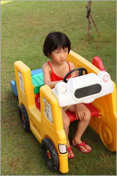 接著就奔向草地,玩開車車,踢黑白球,玩盪鞦韆,民宿內到處都可以玩~
