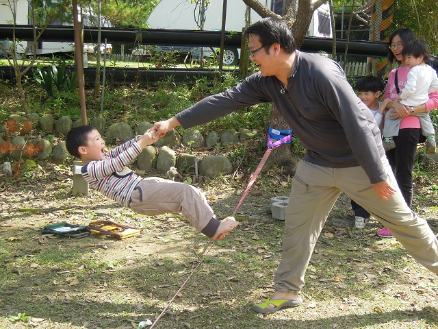 架設時請務必保護好樹木,順便來個愛護植物教學,謝謝樹木長的高又健康能讓我們架繩來走。走繩活動請一定要有大人在旁扶助,勿讓沒經驗的小朋友自行行走,以免發生意外!