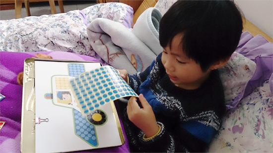 3歲的小彥仔可以貼得非常漂亮,功力不比媽媽差!重點是,再貼的時候很專心,一整個好消磨時間,麻麻我在旁邊納涼就可以了!! 是好物無誤 (吐舌頭)ㄏㄏ