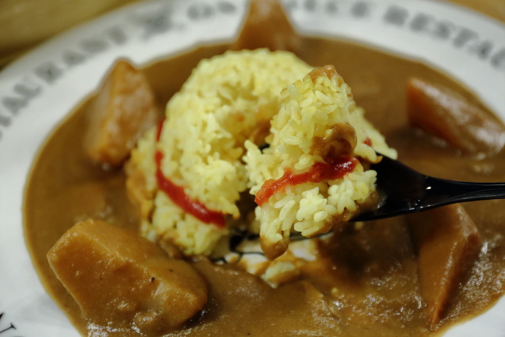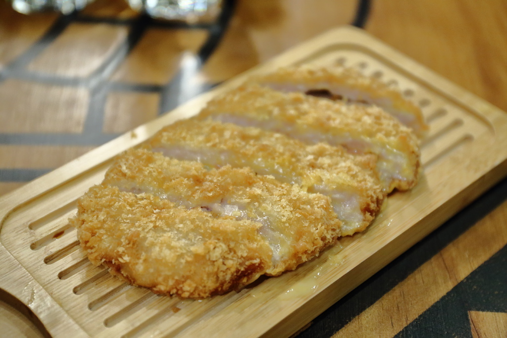 金黃色酥脆外皮的咖哩藍帶豬排,內裹美味起司片及豬里肌肉,沾著咖哩醬一起吃,更是美味無法擋