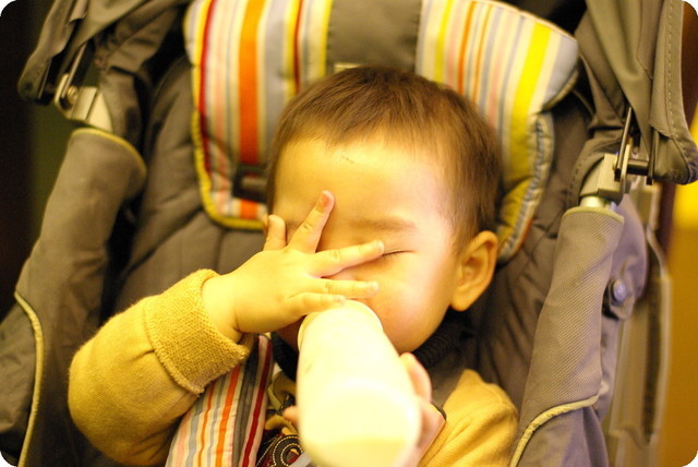 ㄟ~寶寶怎麼上?靠人抱上去~好奇的在上頭東瞧西望!!