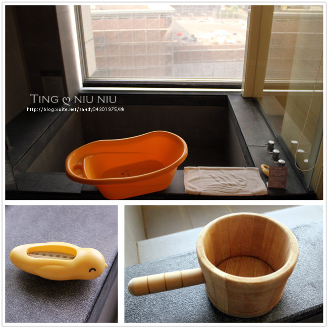 大理石泡湯池蠻大的,飯店除了有提供小澡盆外還有鴨鴨溫度計