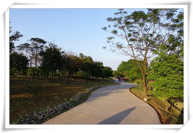 埤塘公園的樹木林立,步道寬和平整,黃昏時帶家人來散步是很舒服的,這也是為什麼現在每天都有那麼多人來運動使得現有停車場不夠用了.