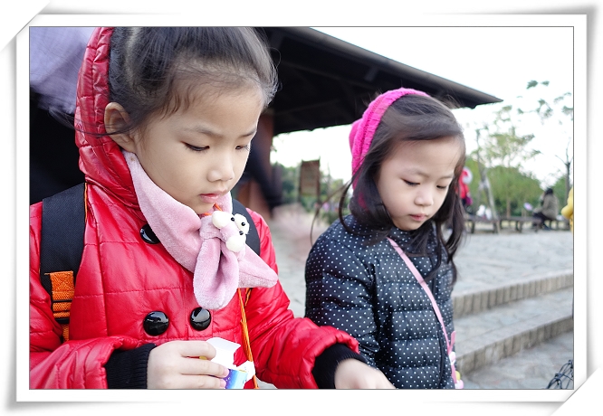 餵完了魚,小人們還拿出自備的泡泡玩玩...我們就可以在一旁納涼,她們可以自個玩了.