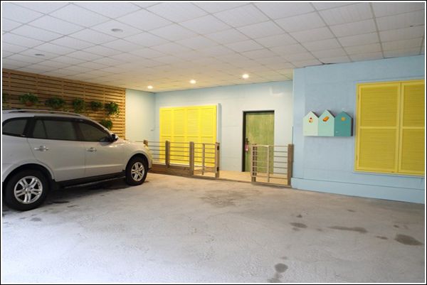童荘位在台南市國民路60巷的住宅區內,門口就是室內停車場,正好可以停3輛車!