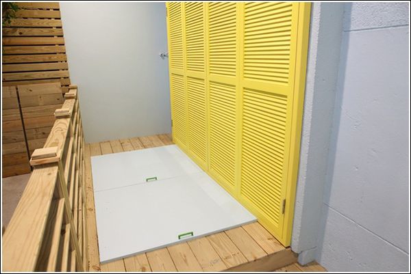 小朋友在廁所的浴池內玩水,大人可以直接透過玻璃看到裡面的情形,是個實用及美觀兼具的巧思設計!