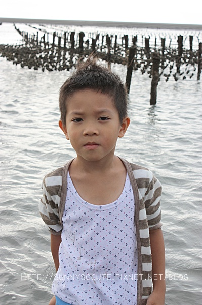 此處主要聽領隊講解蚵的生態,對小軒來說,有點無聊,不過他光是踩水就忙的不亦樂乎。