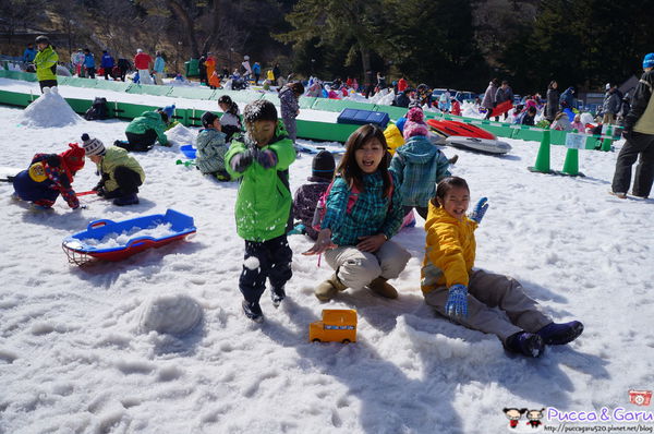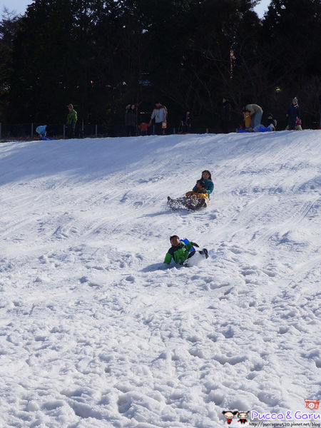 這區域只開放到PM17:00,約15:00時我們又轉戰玩雪橇了!Pucca跟馬麻一起坐,Garu說跟大人坐會吃雪而拒絕馬麻共乘了