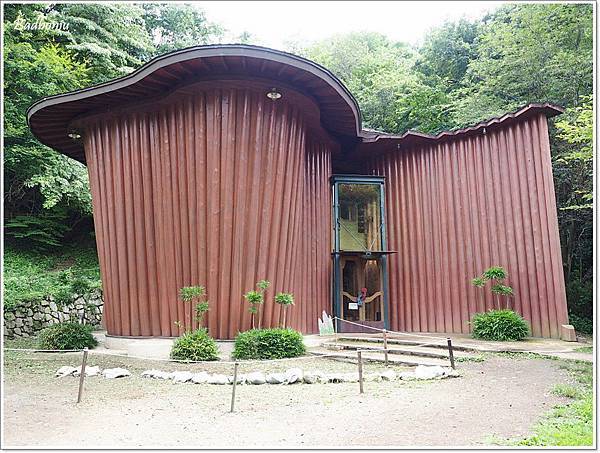 兒童劇場對面也是造型很特別的"森之屋",下層展覽廳展出嚕嚕米的周邊商品,而上層則充滿了嚕嚕米繪本與小說供大人、小朋友閱讀,不過也是因為公休日,所以沒有開放。