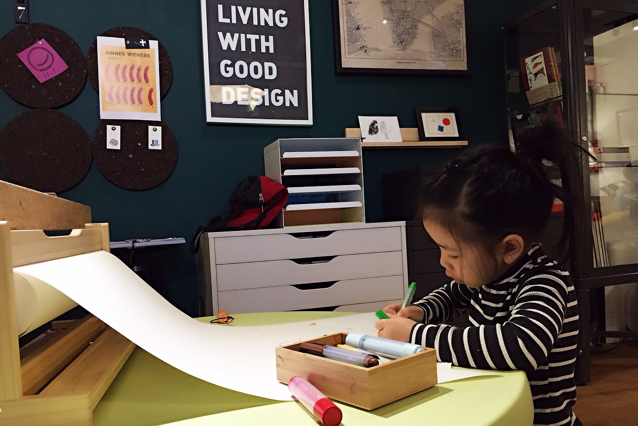 書房旁的邊桌,放了IKEA的紙捲和畫筆