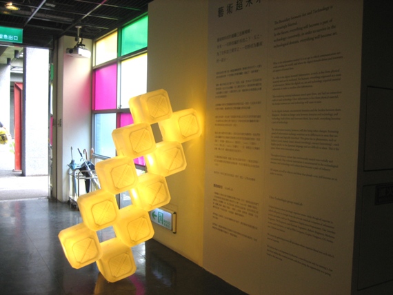 這次的展覽為「藝術超未來」展,由日本的跨領域團隊展出多樣結合科技、藝術與創意概念的作品,探討著資訊時代未來社會發展的可能性,作品都相當有趣,有著無限想像,其中如將數十台手機立於地上,每台都播放著一個正動作中的武士,加上鏡子的反射,成為一個武士軍隊的有趣畫面。