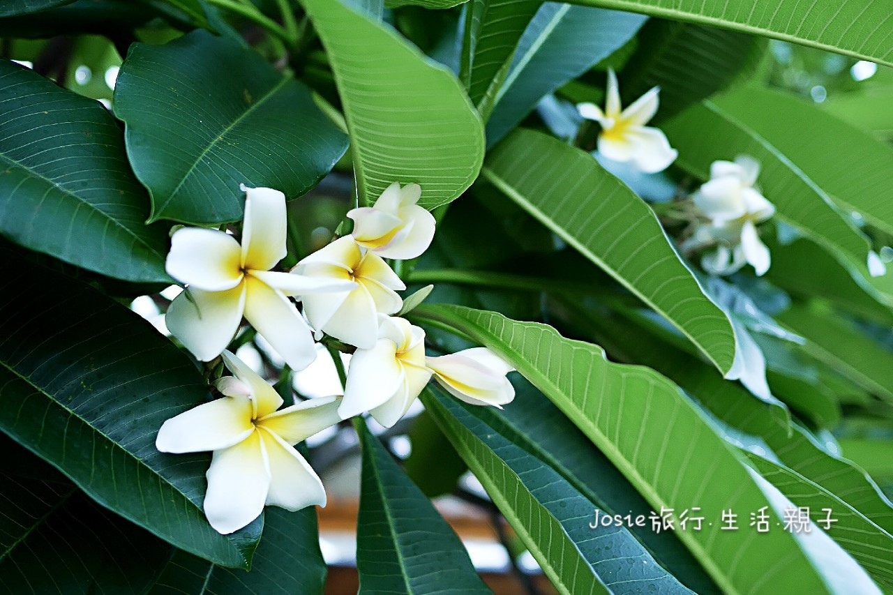 ▲ 草地上種著花朵滿開的雞蛋花樹