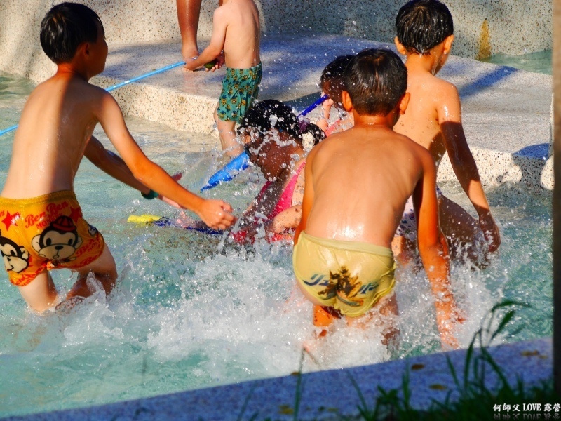 悠遊親子露營 最好玩的設施之一 戲水池(已經要加裝 大遮陽保護網了)