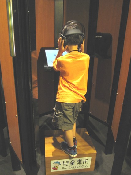 這一區有著隔間的體驗區,參觀者戴上耳機,便可在觸控螢幕上選擇想體驗的項目,如音樂欣賞、音樂演奏體驗等,也貼心的準備了小平台,專供兒童使用。