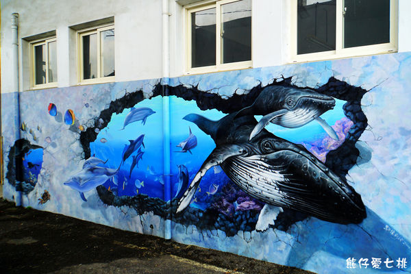 剛才還在炙熱的非洲,轉眼間另一面牆上的3D彩繪,像是轉換到了清涼的海底世界,還真是冷熱兩極的差異性彩繪畫作呢。