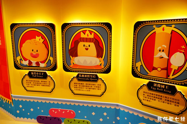 入口處先介紹了興麥蛋捲烘焙王國中的三大品牌公仔主角「蛋捲國王、乳酪蛋糕皇后、泡芙王子」,仔細端詳每位的介紹,在後面參觀的主題中可以與其內容對照出各公仔的喜愛房間喔。