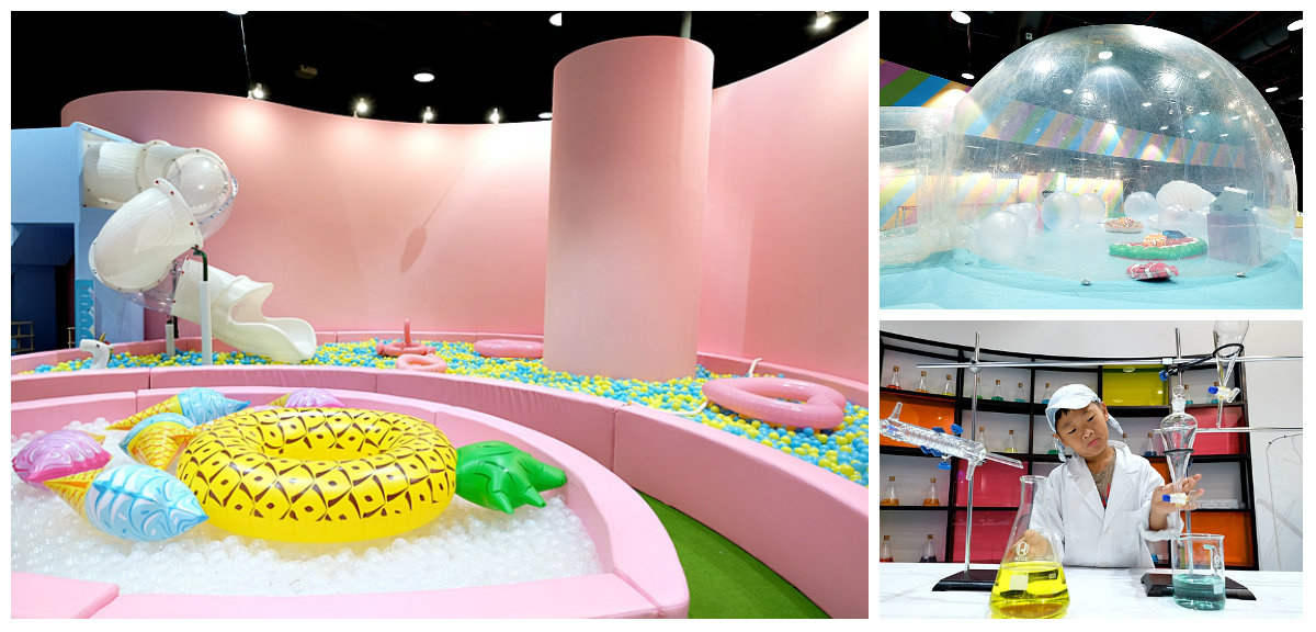 啵啵球池、泡泡製造所、螢光泡泡、泡泡音樂盒以及泡泡實驗室,每一個場景名稱都好有意思。