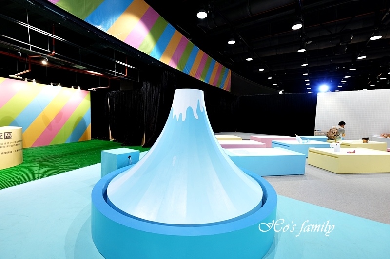 瘋狂泡泡實驗室也有一座富士山,而且每隔十分鐘會噴放泡泡,孩子們都興奮極了,追著泡泡拍打,好熱鬧!