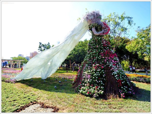 一進到公園,馬上會被大大的新娘子吸引,新娘子身上的花,會隨著季節變化而改變,就像時而濃妝時而淡麗。
