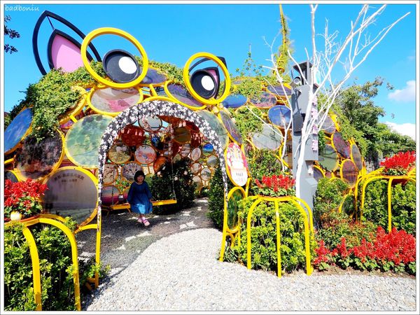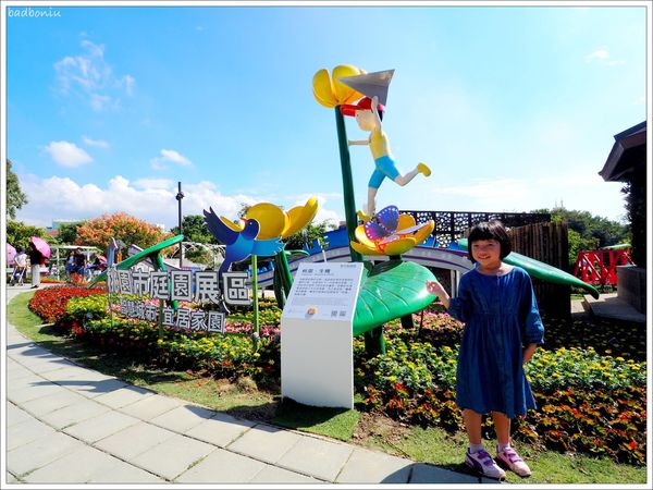 住桃園的壞波妞,當然也要跟桃園展區合照一下囉! 桃園市結合在地花卉及產業特色,打造桃園主題意象庭園