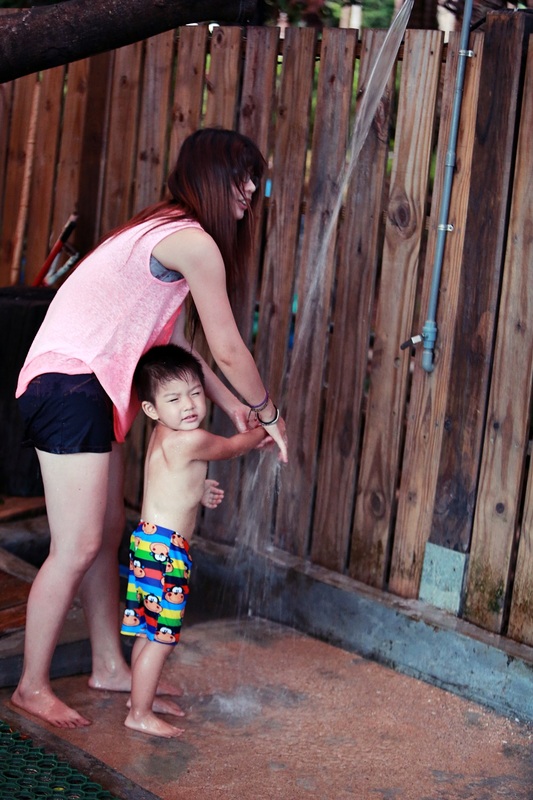 玩完沙,入帳棚即可以進入個人的簡易浴室沖洗,很方便!