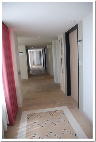 從大廳、走道,一直到房間門,都有清爽簡明的氛圍。雖然外牆的黑水漬不太討喜,但是內部潔淨如新。