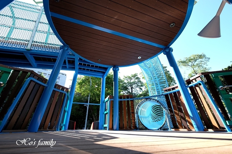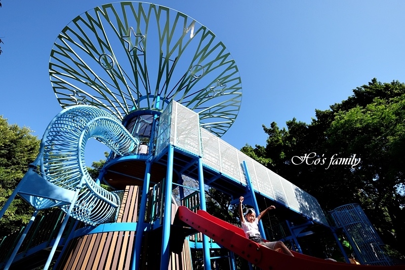 巨大波浪溜滑梯、鮮豔動物主題遊具,四肢並用挑戰趣~台北晴光公園