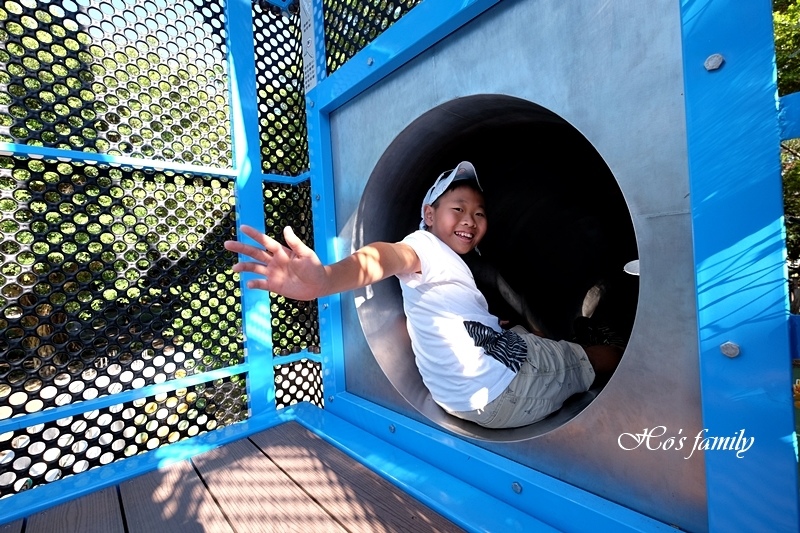 不鏽鋼溜滑梯雖然好玩,不過豔陽天來玩還是要小心燙屁屁,建議一大早或傍晚以後來比較好玩