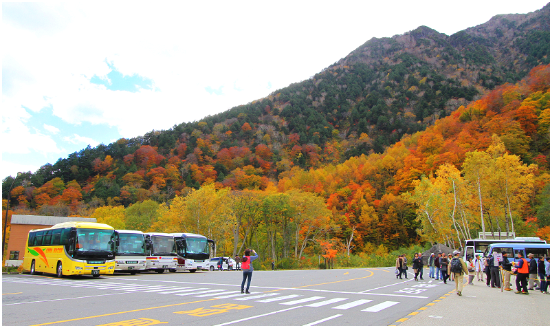 ▲從新幹線長野車站搭了約不到兩個小時,我們就抵達立山黑部的扇澤站,一下車就被滿山滿谷的紅葉所震撼,造訪日期約為10/7,因為這裡海拔約有1433公尺,紅葉比平地或北海道都會更早變色。