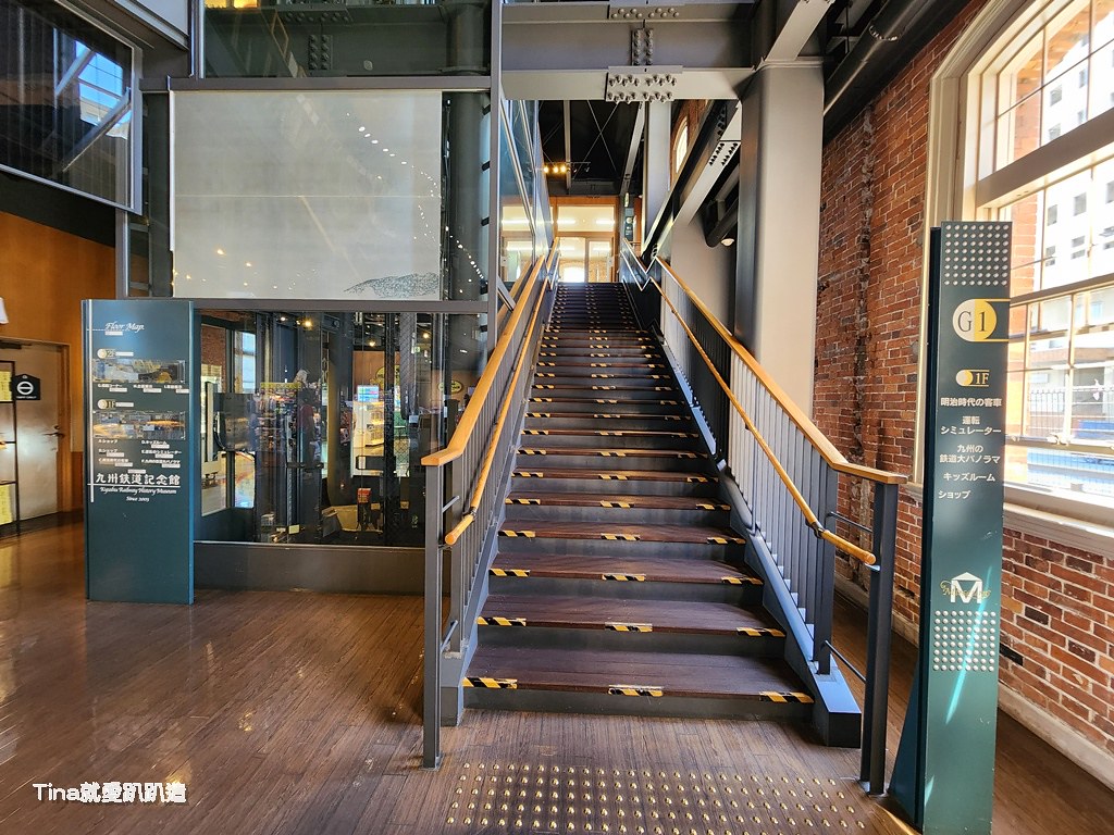 一旁樓梯是通往展示許多九州鐵道歷史相關展品的二樓