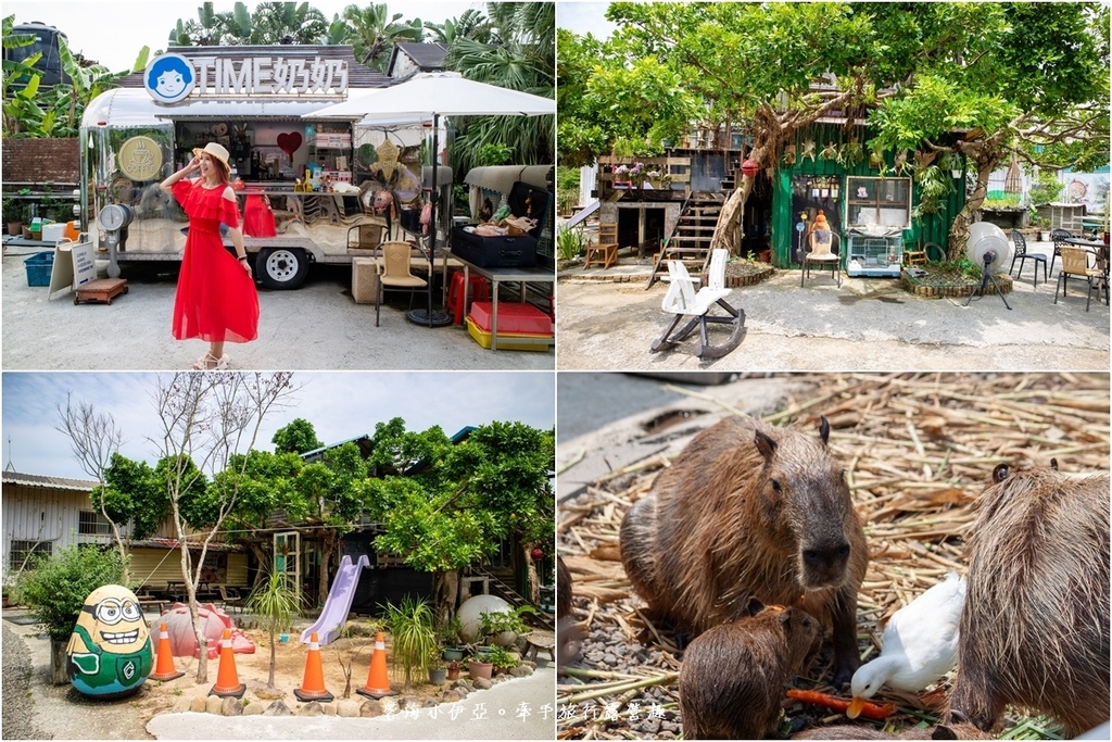 新北金山萬里新景點【Time奶奶樹屋咖啡樂園】是來自花蓮的療癒系複合式咖啡廳,園區空間不大卻佈置許多可愛元素,一輛經典美式露營行動餐車、童話故事樹屋、小型動物園,近距離看剛出生小水豚萌翻天,甚至還有溜滑梯和沙坑等孩子遊戲樂園,入園低消每人只要100元,就可以悠閒坐一整天,充滿溫馨童趣和兒時回憶的地方,一定要收藏起來找機會帶小孩去玩,距離400公尺的地方就是【大鵬足湯公園】,可以一同規劃踩點