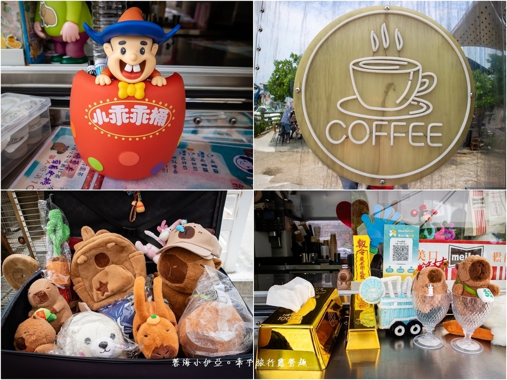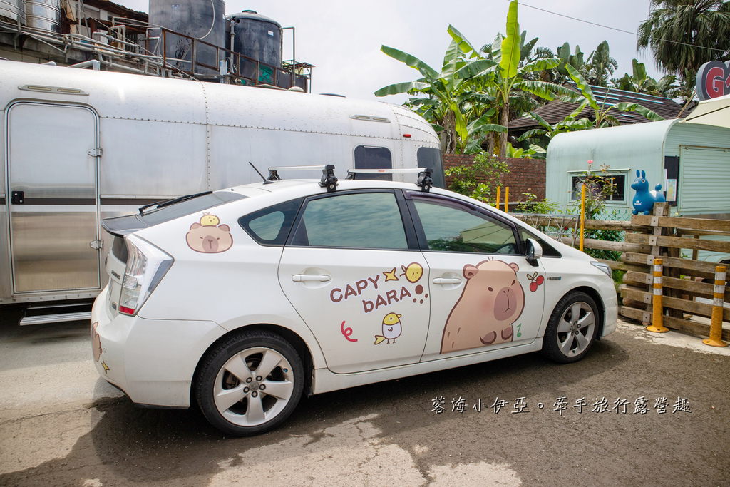 Time奶奶門口外面擺了一台美式露營車,我還打趣的說,該不會是從花蓮開過來的吧XD,還有一些可愛的裝置和一台卡皮巴拉彩繪車,不確定是不是園區主人的,無論如何都十分應景