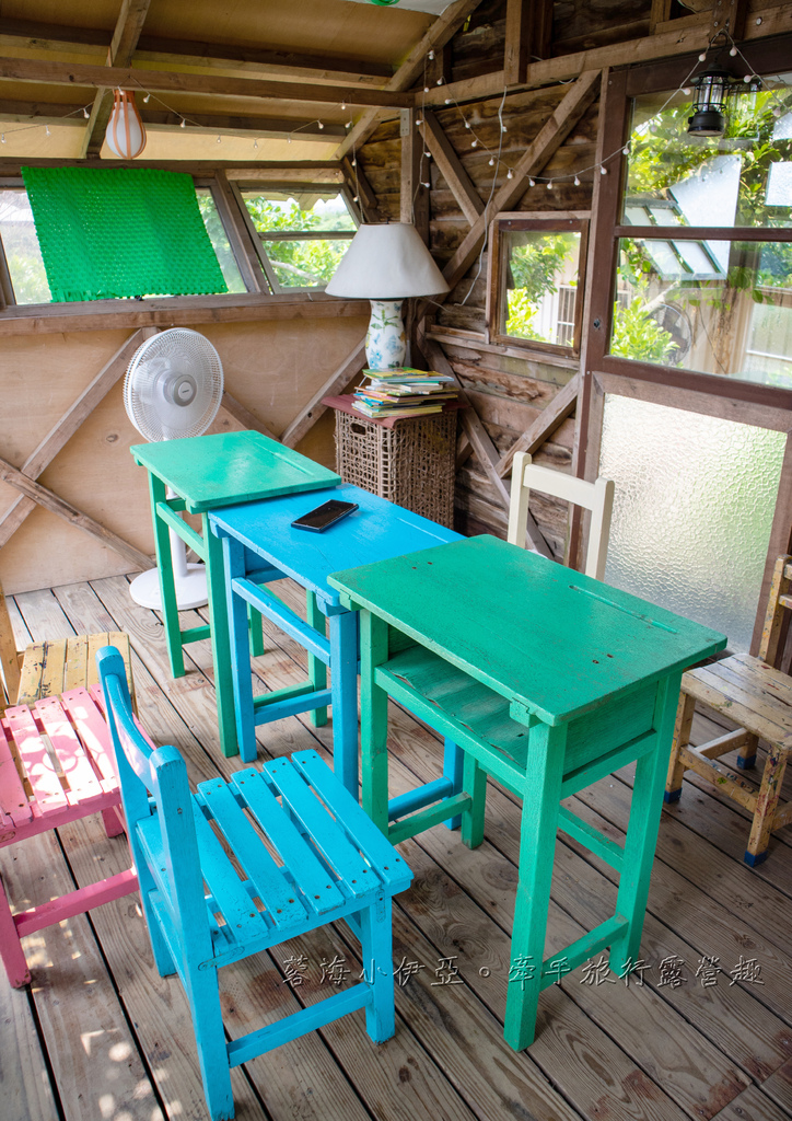 樹屋上有提供座位區,座椅充滿著濃濃懷舊感,只是位子並不多,這天平日來沒有太多遊客,我們就選在樹屋上用餐,要是覺得熱的話還有提供電扇