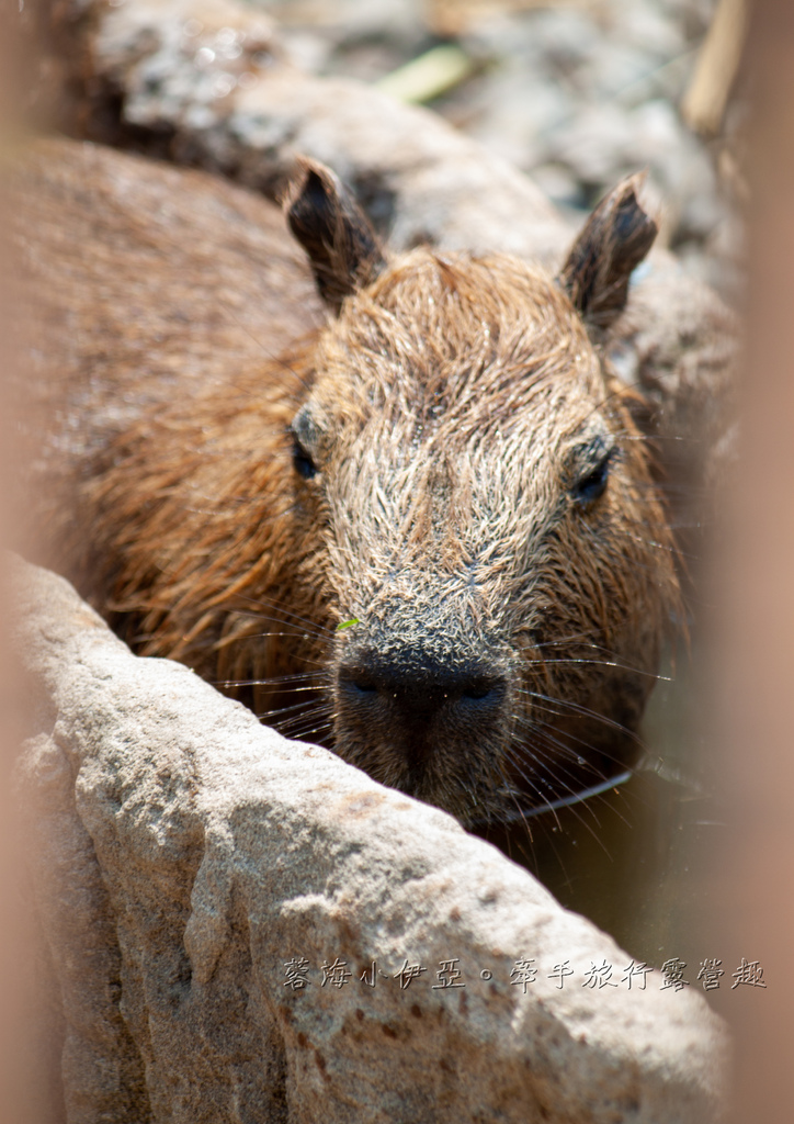 當天正巧碰上中午餵食時間,被小水豚吃飯的模樣療癒了,吃完還泡在水裡洗澡直接被可愛到融化