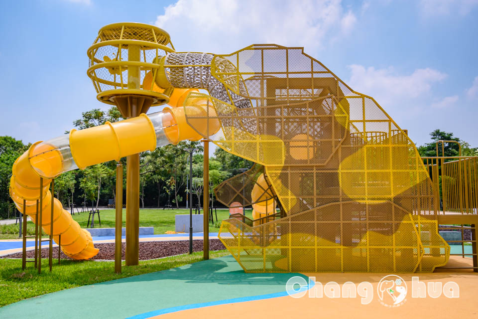 ▼靠近馬路的設施是獅子滑索,張著大大嘴的牠還搖著可愛的小尾巴呢~