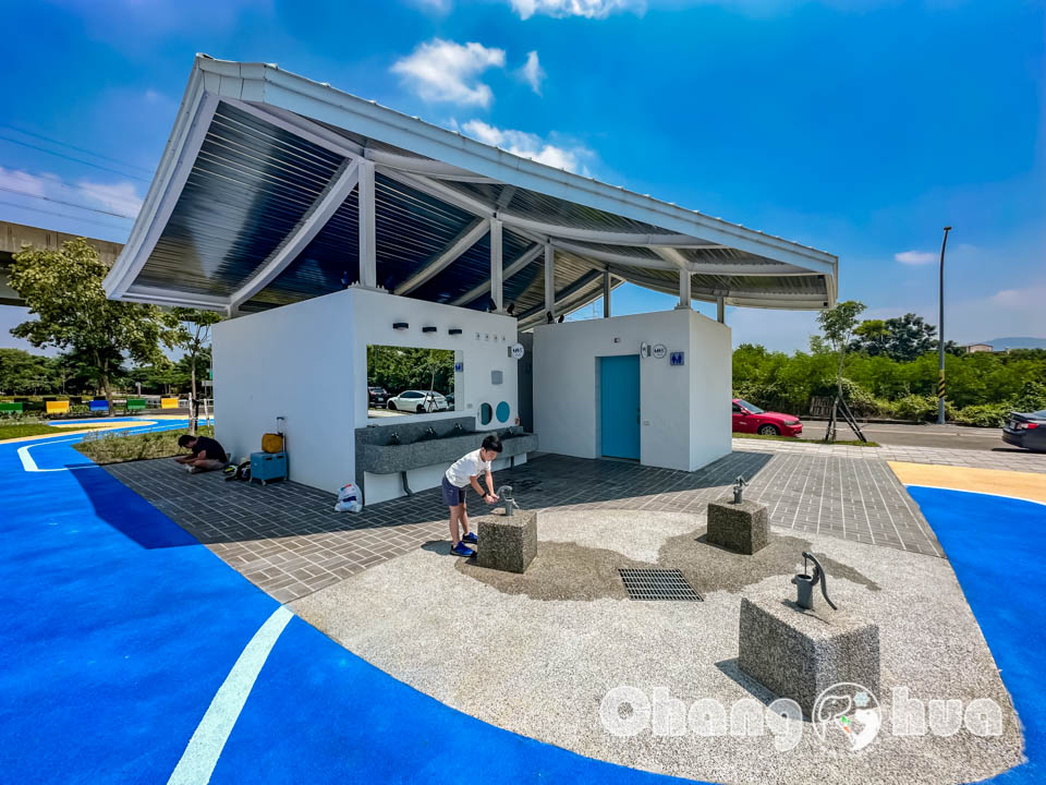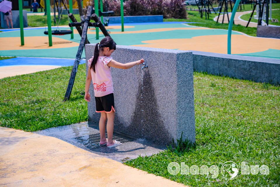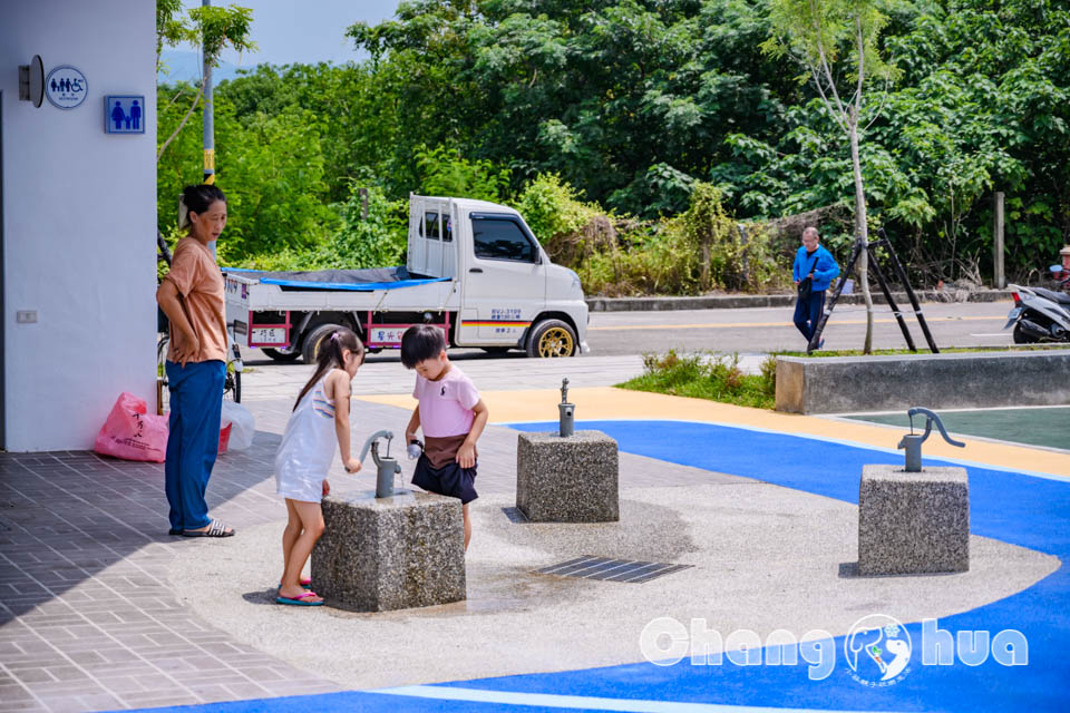 ▼沙池旁還有三個小幫浦可以清涼一下,鄰近就是廁所和簡易沖沙區,家長們可以幫孩子準備一套備用衣服。