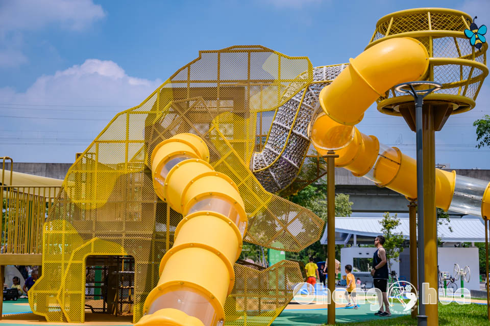 選在暑假尾聲啟用的高鐵橋下雙公園不錯玩,除了遊具多元又有特色,熊趣米公園裡的熊熊造型和田中親子公園的米粒大大都很吸睛,小朋友最喜歡的鞦韆、滑梯和彈跳床等遊具通通有,也有滑索、沙池和挑戰區,便民廁所也沒少,這點很加分!只是遮陽設備不足相當可惜,艷陽高照的時段不只小朋友待不住,連大人都受不了。希望相關單位可以針對遮陽設備檢討是否有可行方案,不然公園的使用時段受限有點可惜了。